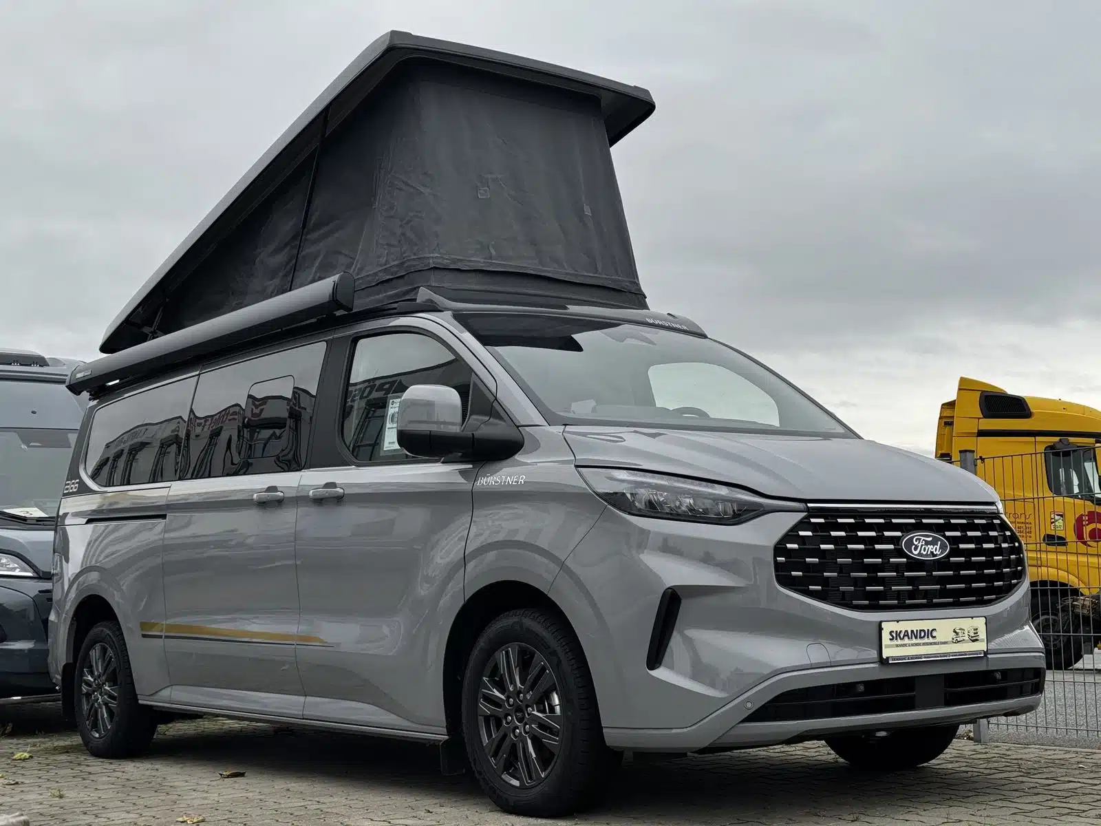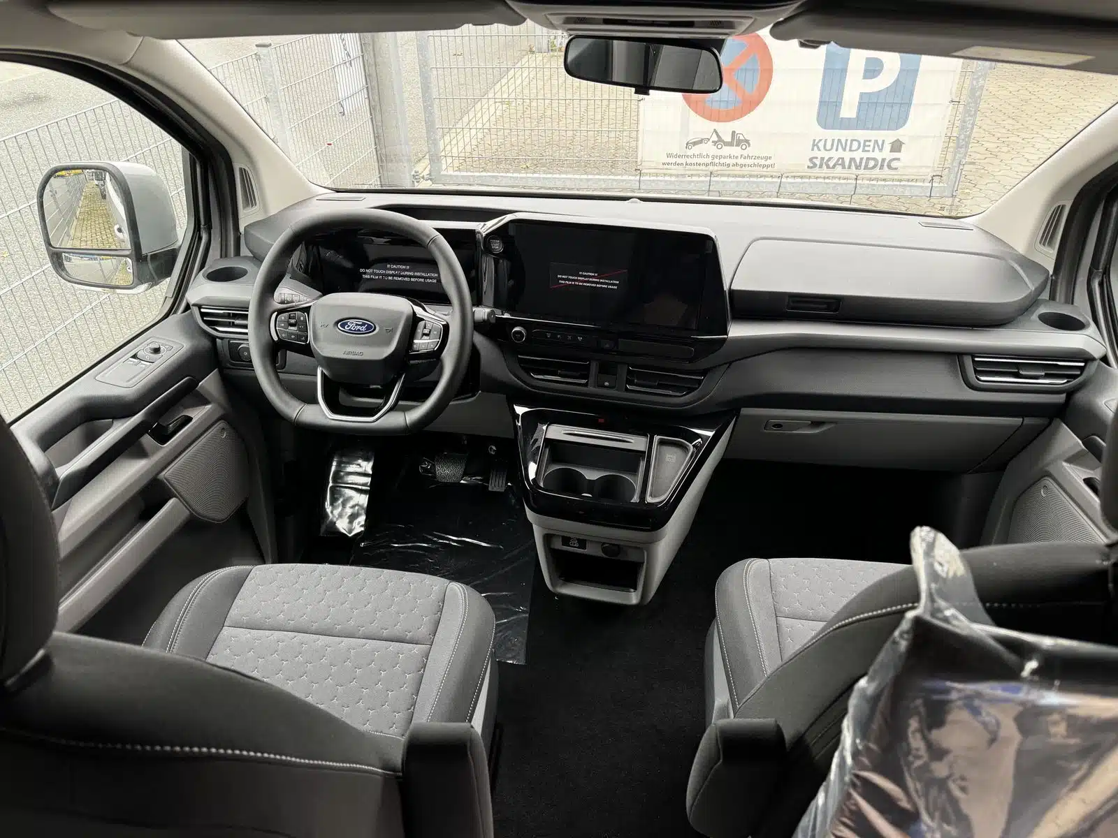 - Standardudstyr (1): Ford Tourneo Custom V710 – FWD, 170 hk, 8-trins automatgear (Titanium-version); nødkald assistent (eCall-nødopkaldssystem til nødopkald); nøglefri start; faste ruder i tredje række; hængslet vindue i anden række; opvarmede for- og bagruder; mørktonede ruder; Xtra Heavy Duty-batteri; stor 70 l brændstoftank; forberedt til anhængertræk; speciel grå lakering inklusive antracitfarvet pop-up-tag; helårsdæk; elektrisk justerbare og opvarmede sidespejle med automatisk foldefunktion; parkeringssensorer for og bag